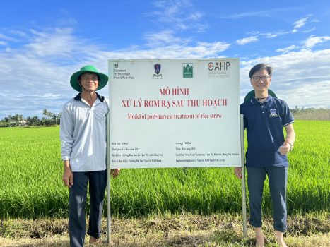 Trường ĐH Nguyễn Tất Thành triển khai mô hình: Xử lý rơm rạ sau thu hoạch bằng chế phẩm vi sinh trên đồng ruộng